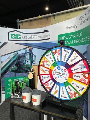 Laat jouw gegevens achter, draai aan het rad en ga naar huis met een leuk gadget of lekkere donut!