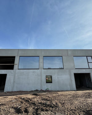In Zoersel zijn we volop in de weer met de voorbereidingen voor de stort van 1200m² gepolierde betonvloer! Ook de uitstraling van het gebouw krijgt vorm met de plaatsing van de vliesgevel (glasgevel) in aluminium schrijnwerk, geleverd en vakkundig geplaatst door KA construct. Stay tuned voor de volgende updates.